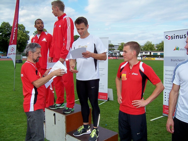 Im Männersprint waren die Vorzeichen ähnlich: Der Nigerianer Peter Emelieze kratzte im Vorlauf (10.29s) bereits am Meetingrekord und ließ im Finale fulminante 10,18s folgen, Weltklasse ! In seinem Sog steigerte sich Alex Schaaf auf 10,33s, Marius Broening folgte mit 10,34s. Nach solchen Vorleistungen lief es auch in der Staffel rund, 39,15s bedeuten WM-Norm.