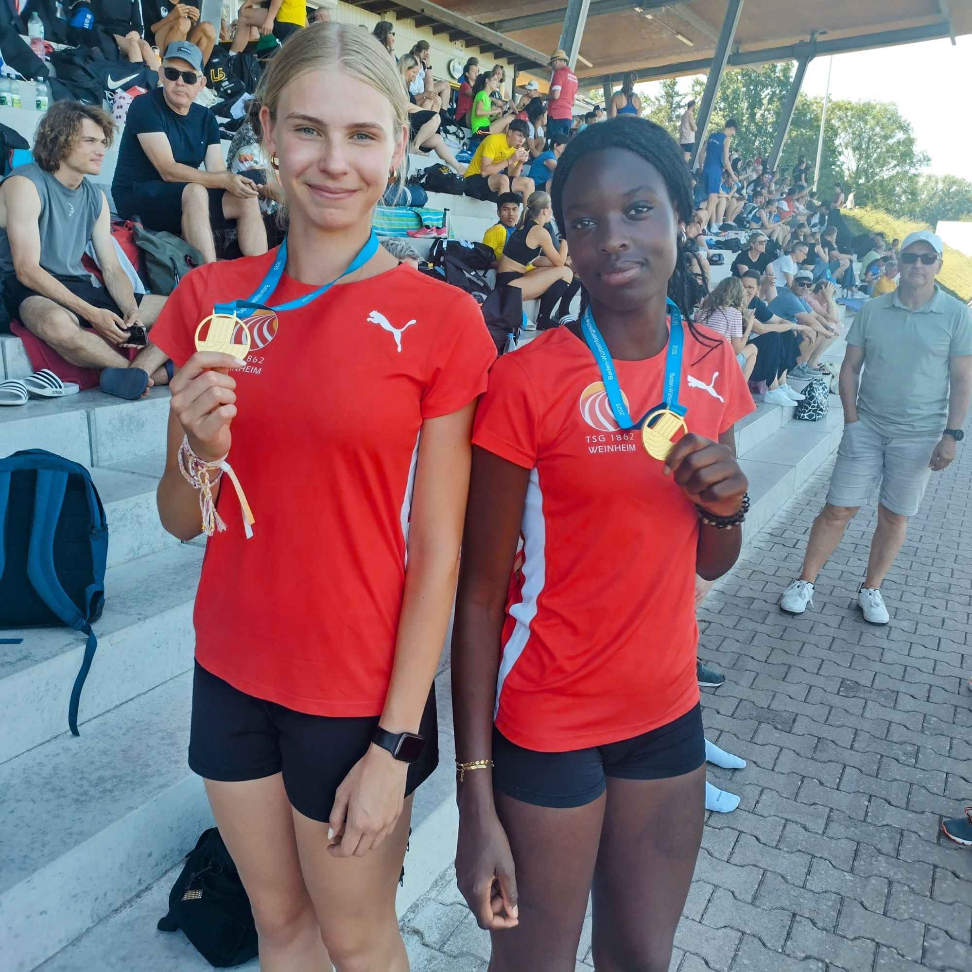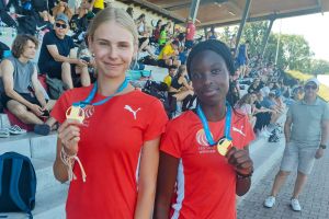 Eine wahre Leistungsexplosion erlebte dabei Dreispringerin Maella Kuetchou (U18) die mit einer Hallenvorleistung von 10,76m lediglich Mitfavoritin war. Mit fulminanten 11,33m eröffnete die Abiturientin den Wettkampf und versetzte damit ihre Konkurrentinnen in einen Handlungszwang, der bei vielen die Leichtigkeit nahm. Maella sprang wie beflügelt und lies weitere Bestleistungen von 11,49m und sogar 11,52m folgen; Gold mit großem Vorsprung war ihr Lohn.