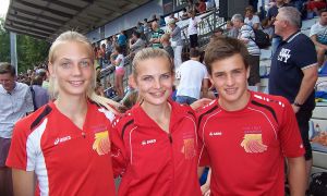 Erst zum zweiten Mal wurden die Deutschen Schülermeisterschaften ausgetragen wobei hier nur 15-Jährige startberechtigt sind. Aufgrund der durchweg hochklassigen Leistungen dürfte die Fortführung dieser Meisterschaft nur Formsache sein. Mit drei Athleten wurden die TSG-Farben gut vertreten. Oliver Oestreicher war kürzlich über 300m nur um ein Hundertstel am Vereinsrekord vorbei geschrammt und wollte in Köln unbedingt in die Rekordliste einziehen, was trefflich gelang: mit 37,94s blieb er drei Hundertstel unter der alten Marke und zog in das B-Finale ein, wo er sich tags darauf auf 37,63s steigerte und Gesamtzwölfter wurde. Ungewohnte technische Probleme hatte Hochspringerin Bianca Stichling, die für die Anfangshöhe drei Versuche benötigte, dann 1,57m und 1,61m jeweils auf Anhieb meisterte. An 1,65m scheiterte die Birkenauerin knapp, so dass sie elfte wurde. Über 800m ging Linda Geißler mit Oberschenkelbeschwerden an den Start, die sie trotz intensiver Behandlung über zwei Wochen begleiteten. Nach zuletzt erzielter Bestzeit von 2:20,60min blieben die Uhren nach verhaltenem Rennen bei 2:23,86min stehen womit eine Finalteilnahme außer Reichweite war. Das erfolgreiche Trio wird in Kürze die Saison beenden und Anfang September mit dem Aufbautraining für die neue Saison beginnen.