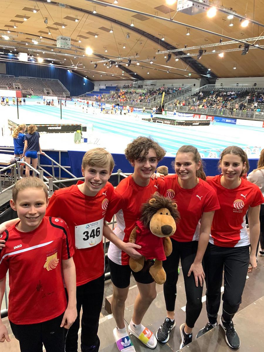 Das Karlsruher Indoor Meeting wurde bei seiner diesjährigen Auflage als älteste Hallenveranstaltung Europas ausgezeichnet und darf sich als stolzes Mitglied der World Athletics Tour-Serie zählen. Traditionell dürfen auch regionale Nachwuchsathleten antreten, was in der 5000 Zuschauern ausverkauften Messehalle den Puls etwas höher schlagen lässt. Mit Jakob Taro Gullatz über die 60m und Bennet Daners über 800m haben sich die besten Weinheimer Nachwuchsathleten bei einem Qualifikationssportfest ihre Starberechtigung erlaufen und hatten starke Konkurrenz gegen sich. Jakob, seines Zeichens 2019 badischer Rekordhalter über 75m der M14 steigerte seine vor Wochenfrist gesetzte Marke auf 7,56s, um mit drei Hundertstel Vorsprung siegreich zu sein. Groß war der Jubel seiner Trainingsgruppe, die eigens Plakate fertigte und stolz nach oben hielt. Bennet Daners, der beim Qualiwettkampf mit einem Start-Ziel-Sieg auftrumpfte, wagte erneut einen Alleingang und gewann in 2:12,76min souverän.