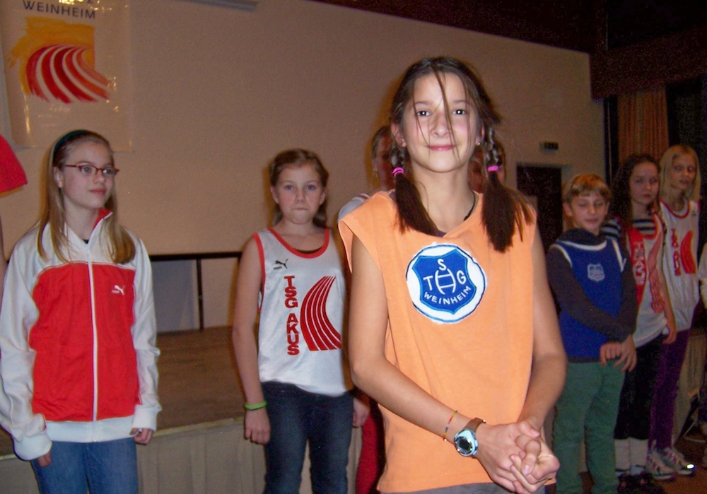Der traditionelle Jahresabschluss stand ganz im Zeichen des ablaufenden 150-Jahre-Jubiläums der TSG 1862 Weinheim. Mit Unterstützung ehemaliger Athleten gelang es, unter dem Motto: Germanys next Toptrikot eine Palette von Wettkampftrikots zu präsentieren wobei die Aufwärmkleidung Anfang der achtziger Jahre eher einer Freizeitkleidung im Hawai-Look ähnelte. Ihr damaliges Trikot dürfte auch Ehrengast Claudia Reidick wiedererkannt haben, in welchem sie –nach Olympiabronze 1988 in Seoul für Mannheim- 1989 und 1991 zwei deutsche Hürdentitel für die TSG gewann.